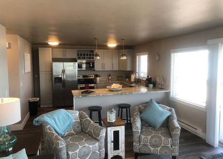 Walk in the unit, kick off your shoes and relax. It offers a full kitchen, stream your favorite tv app on our smart tv's, comfortable living space, WiFi and views of the lake as far as the eye can see.